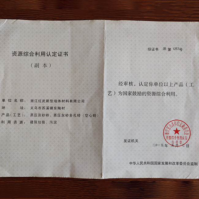 近年來,浙江紅武得到政府有關部門的大力支持,在2014年評為義烏市《機器換人先進單位》,2015年評委金華市《墻材革新先進單位》,產(chǎn)品受國家政策扶持,墻改基金返還用戶,深受開發(fā)商、建筑商歡迎。公司還將致力開放和生產(chǎn)新型墻體材料,本著科學管理安全生產(chǎn),質量為先的理念,為國家的環(huán)保建設事業(yè)添磚加瓦。
